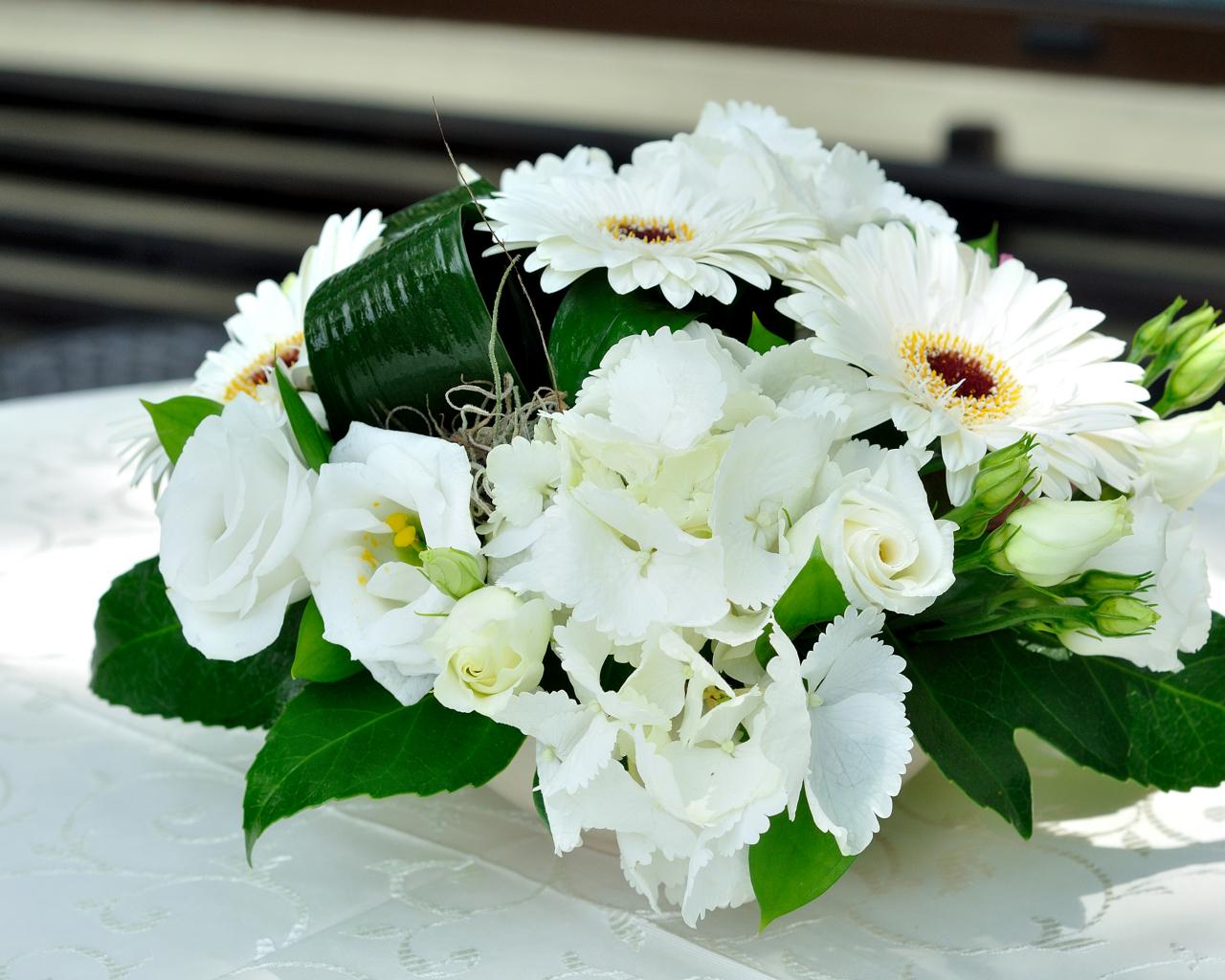 Wallpaper Festive bouquet with flowers of roses, eustoma and gerberas