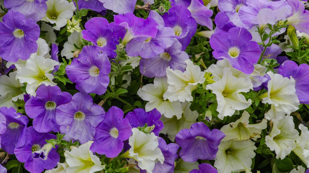 Wallpaper White and purple petunia flowers close up