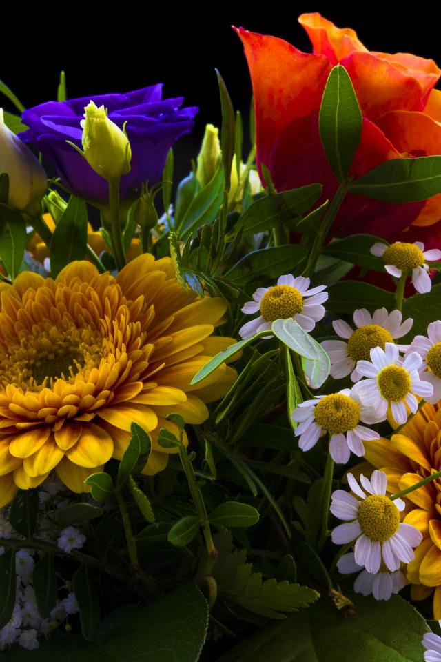Wallpaper Beautiful bouquet of colorful flowers on a black background