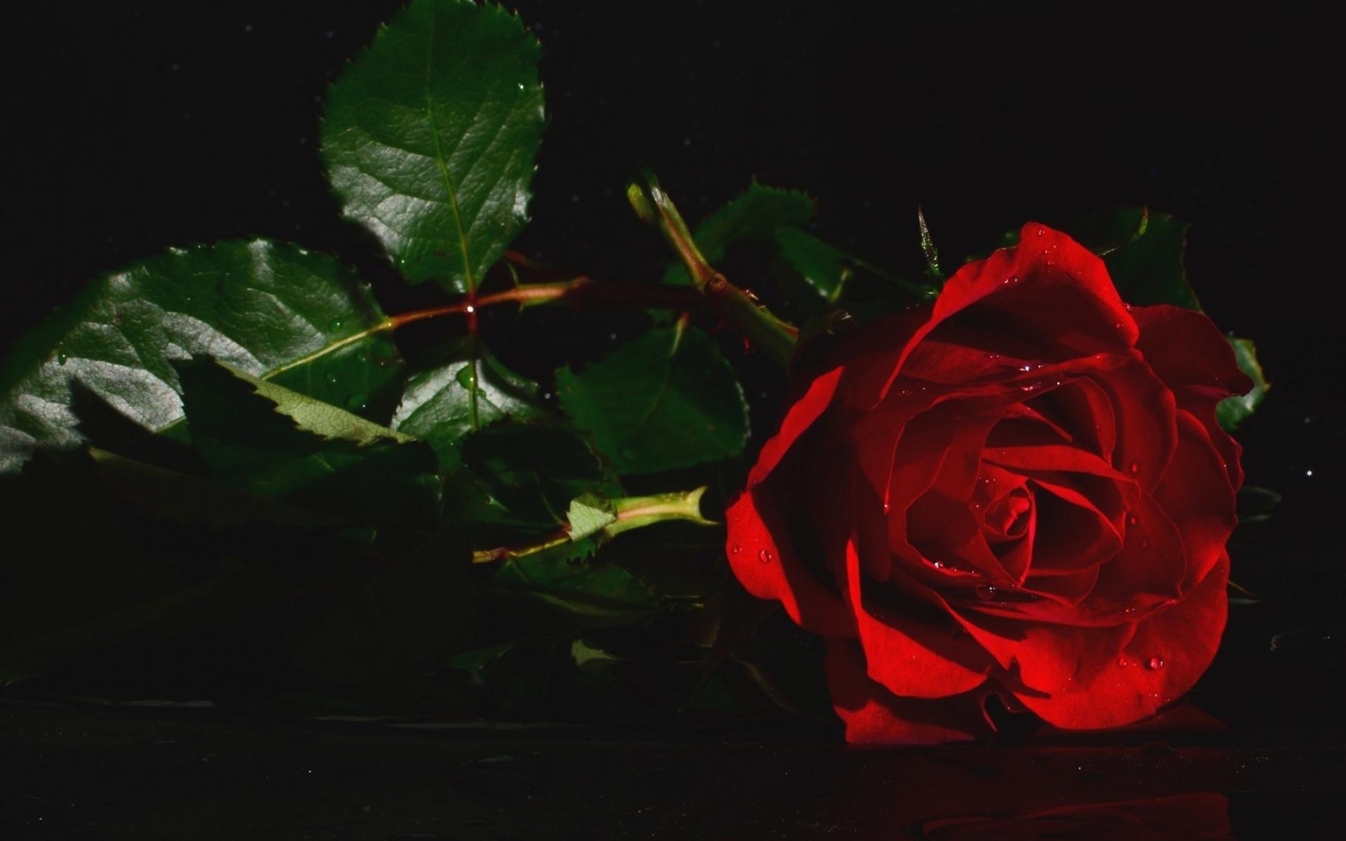 Wallpaper Red rose with green leaves in water