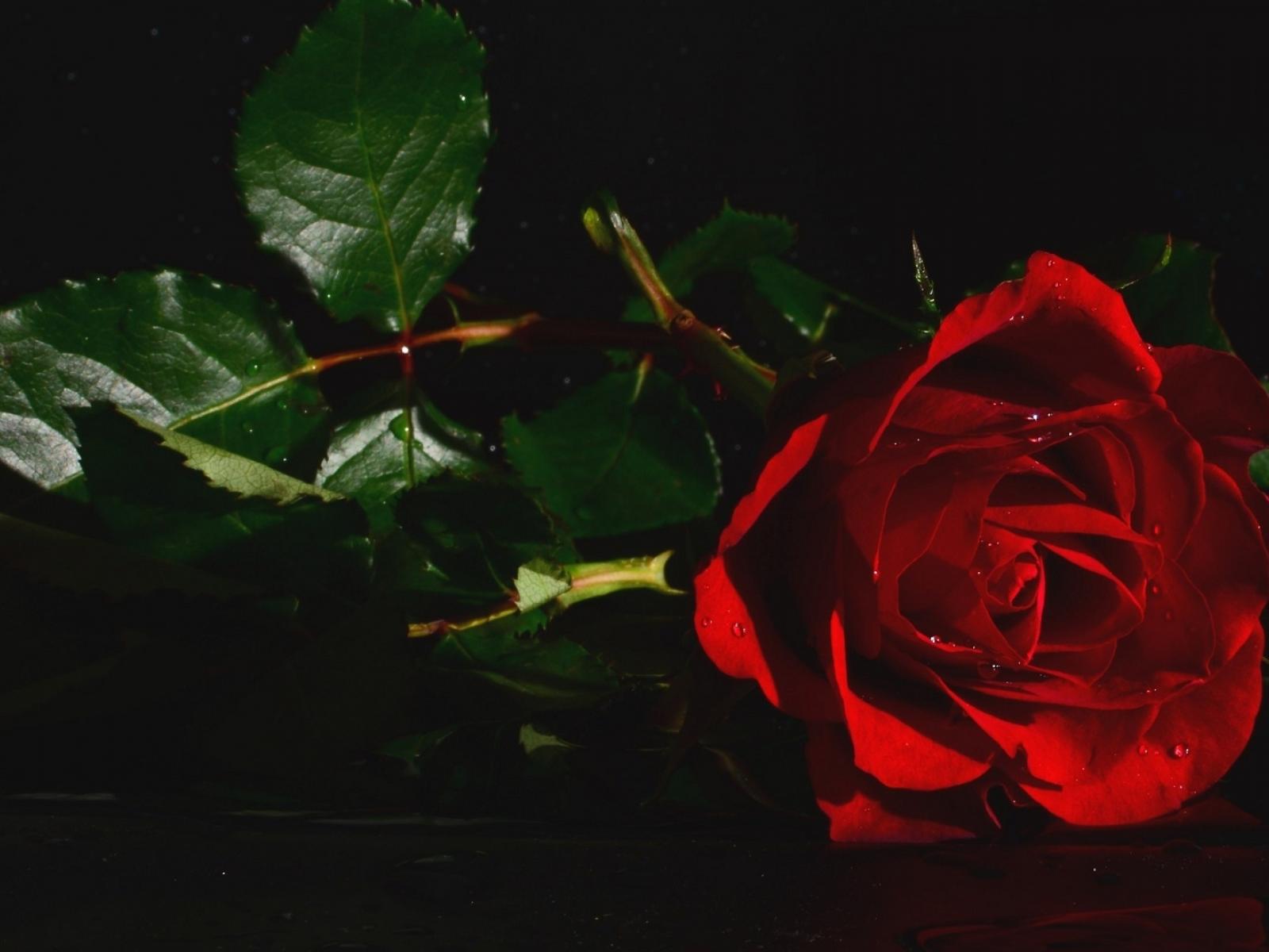 Wallpaper Red rose with green leaves in water