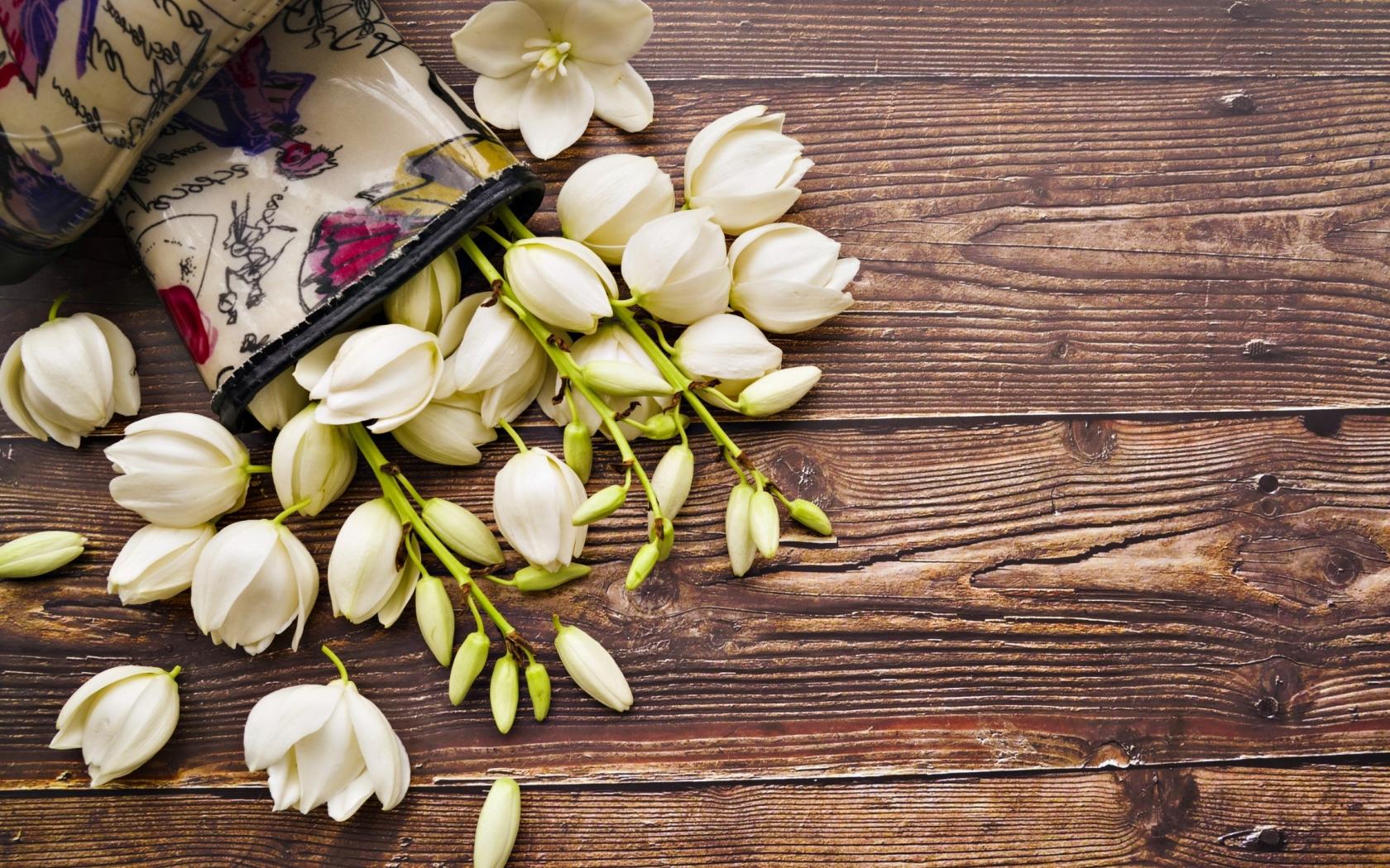 Wallpaper White flowers on wooden background