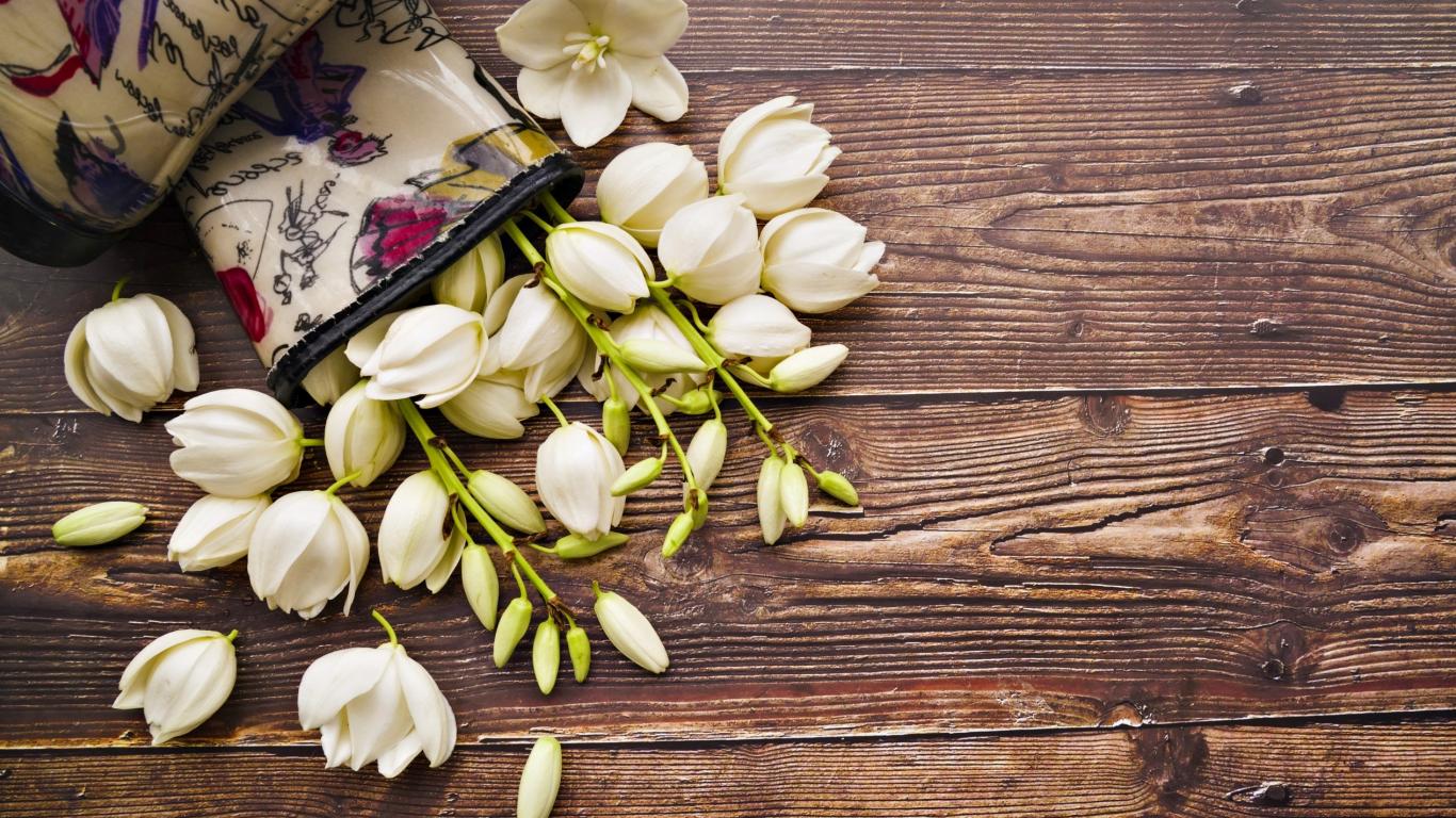 Wallpaper White flowers on wooden background