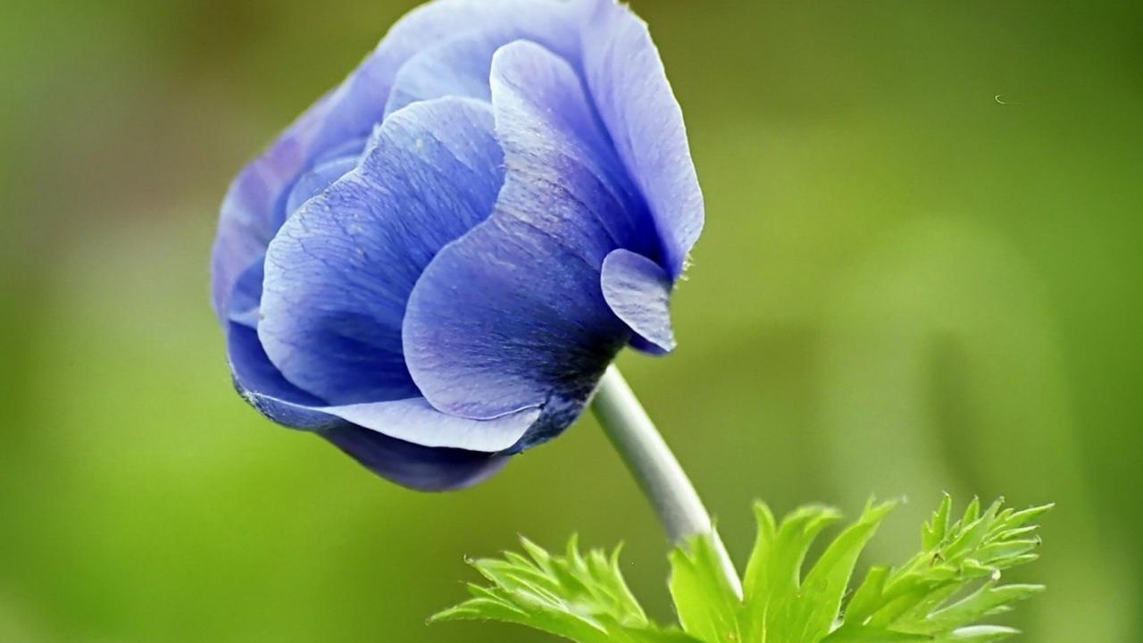 Wallpaper Blue anemone flower on green background