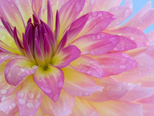 Wallpaper Pink dahlia with water droplets on petals close-up