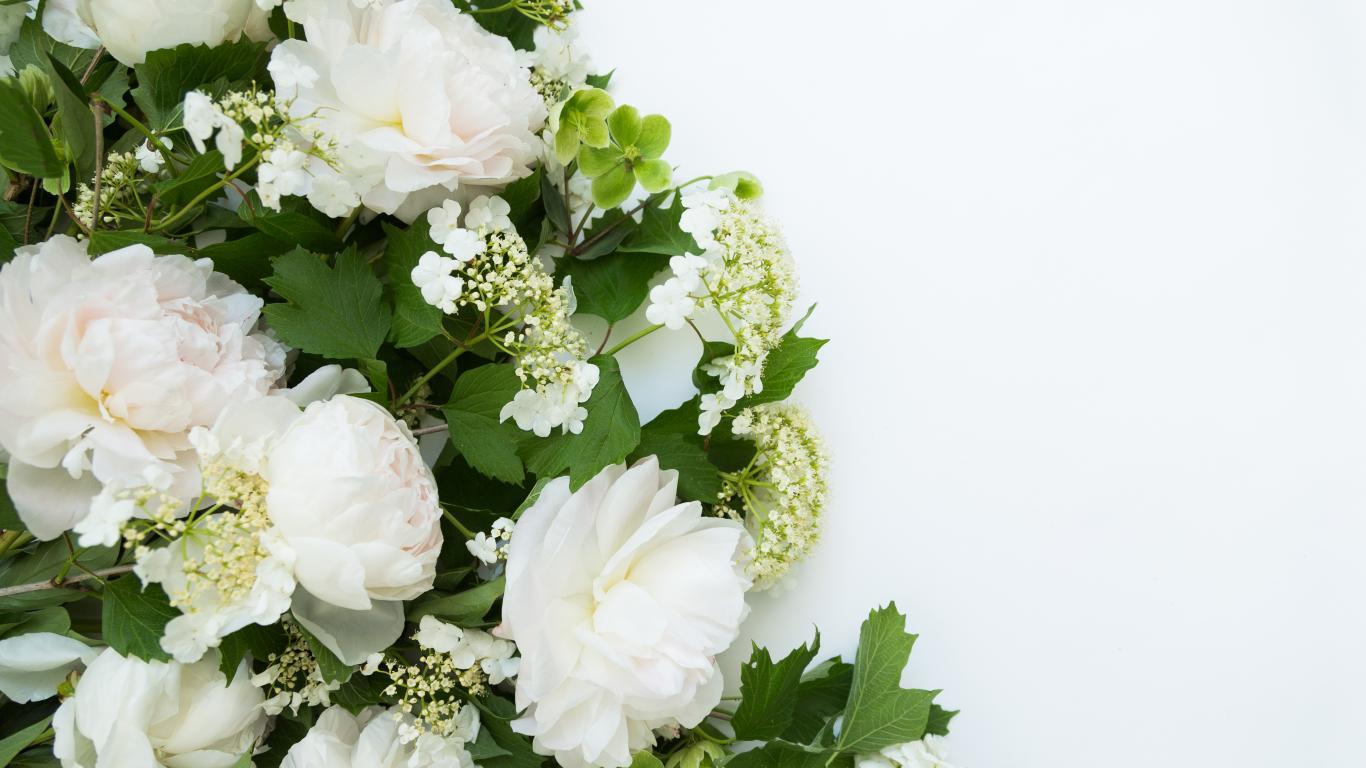 Wallpaper Bouquet of white peonies on a white background