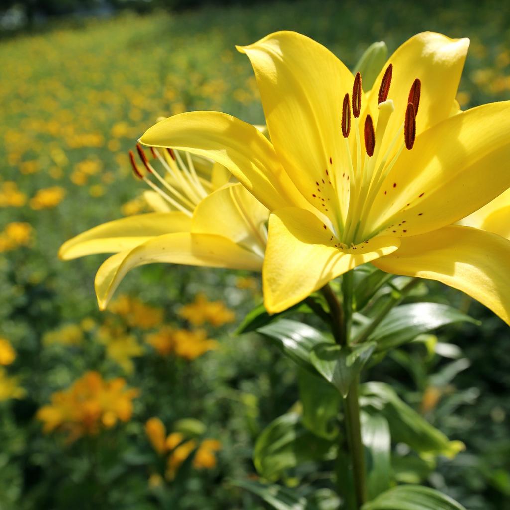 Wallpaper Beautiful yellow lily on a bed in the sun