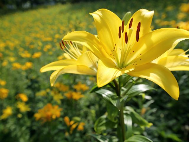 Wallpaper Beautiful yellow lily on a bed in the sun