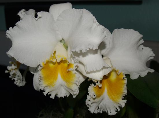 Wallpaper Beautiful white orchids with a yellow center on a black background