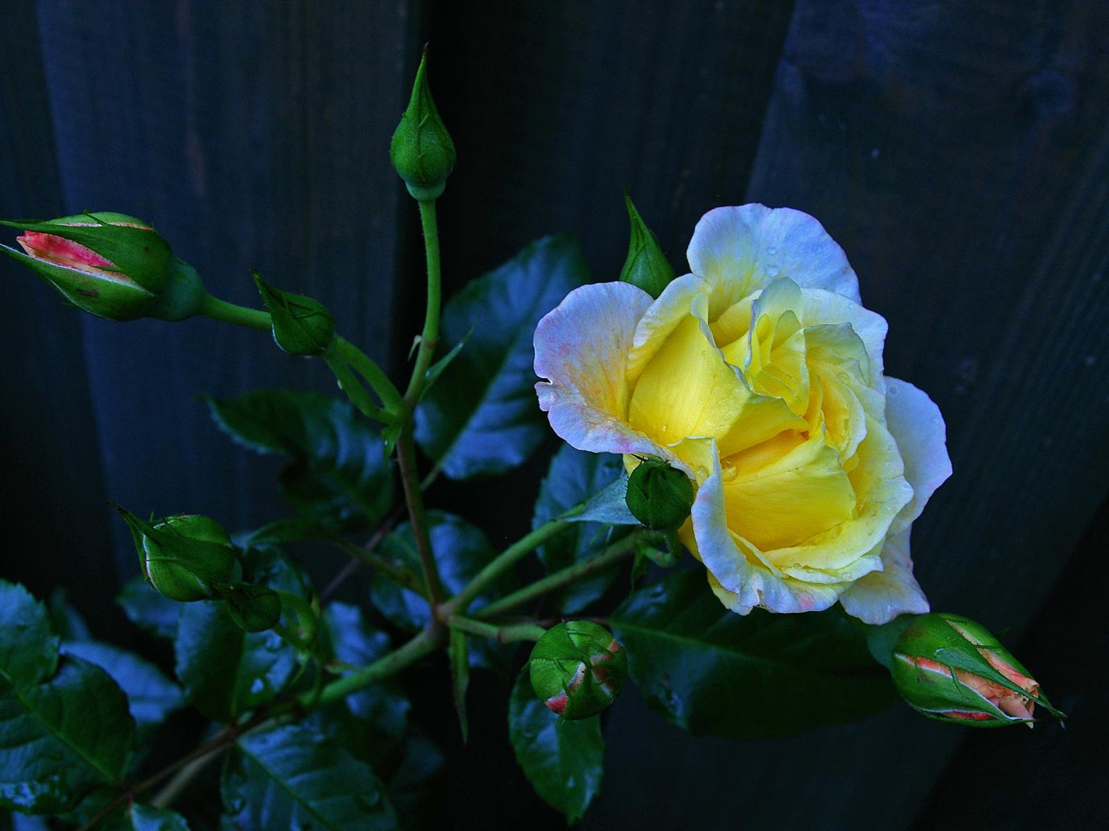 Wallpaper Beautiful yellow rose with buds at the fence