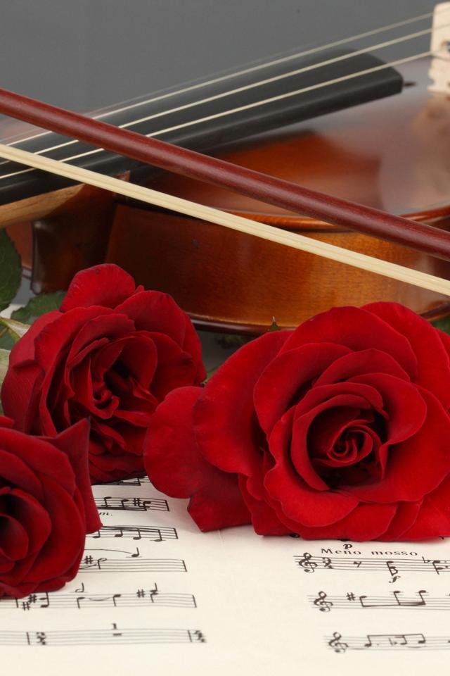 Wallpaper Three red roses lie on a violin notebook