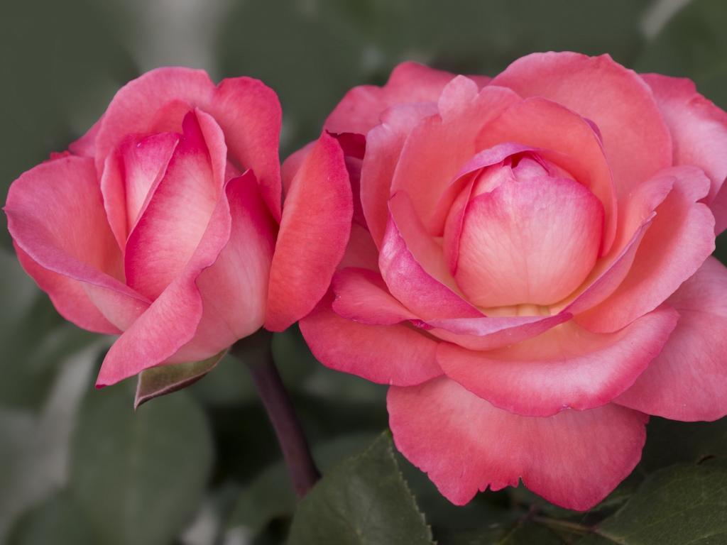 Wallpaper Two beautiful pink roses close up