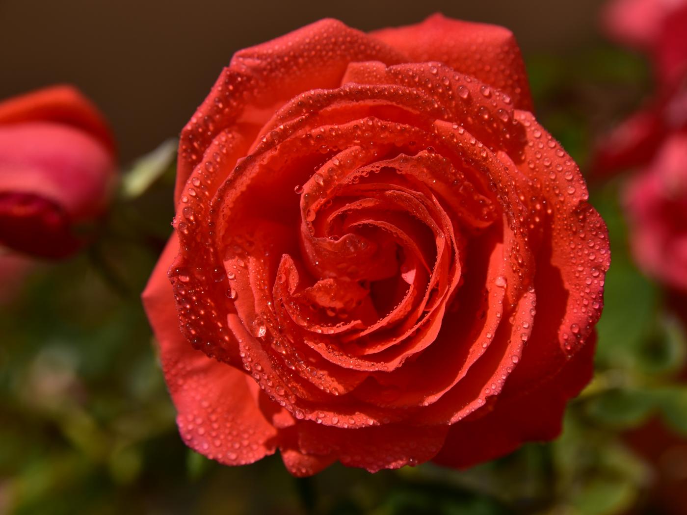 Wallpaper Beautiful orange rose in the drops of morning dew