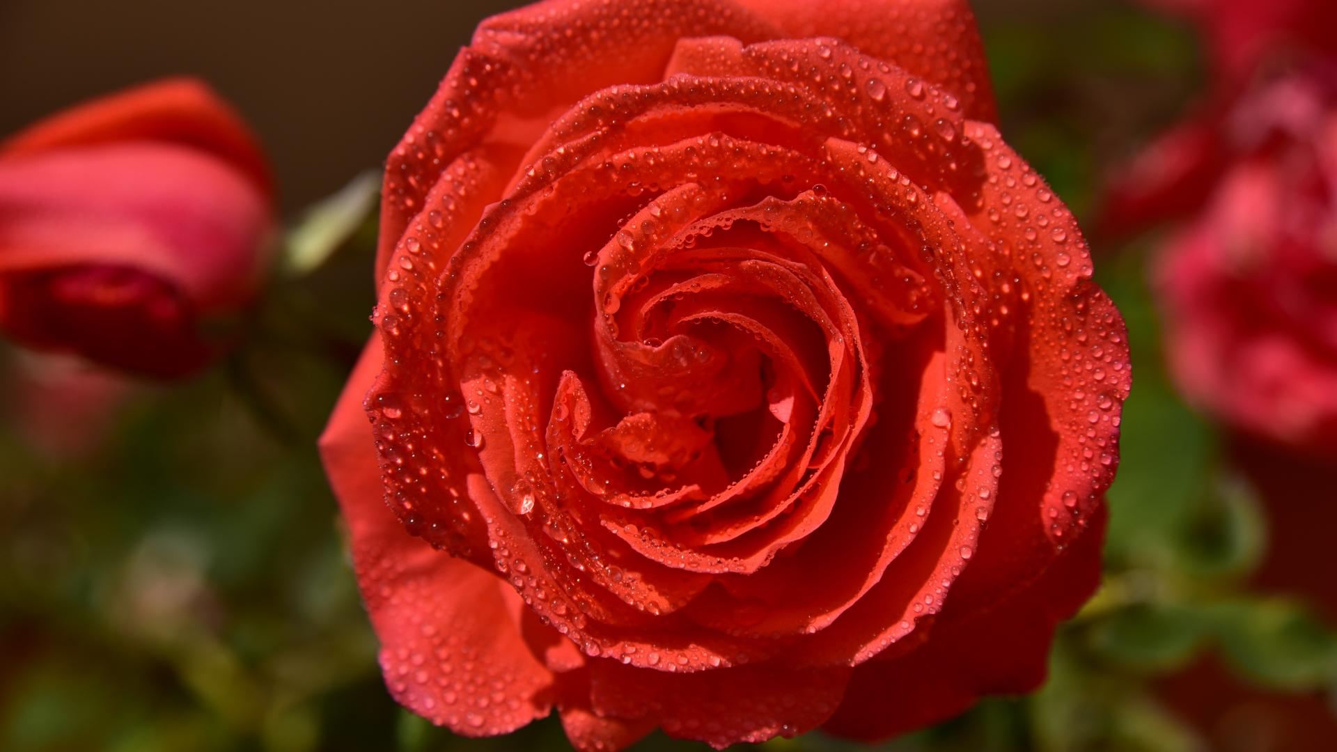 Wallpaper Beautiful orange rose in the drops of morning dew