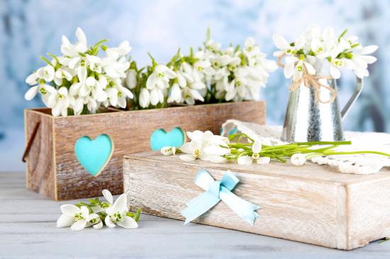 Wallpaper Красивые нежные белые подснежники в деревянном ящике