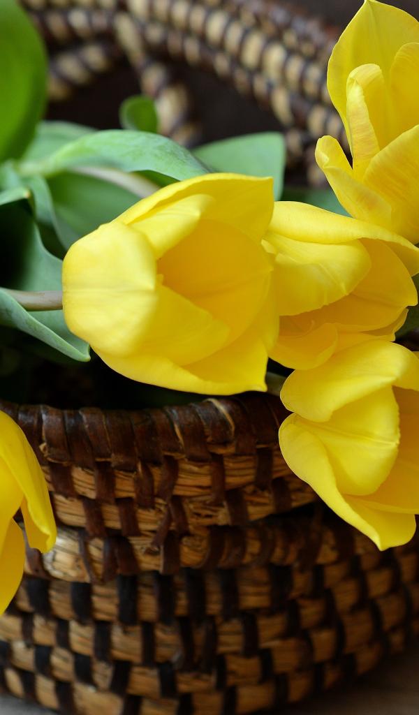 Wallpaper Bouquet of yellow tulips in a basket on the table