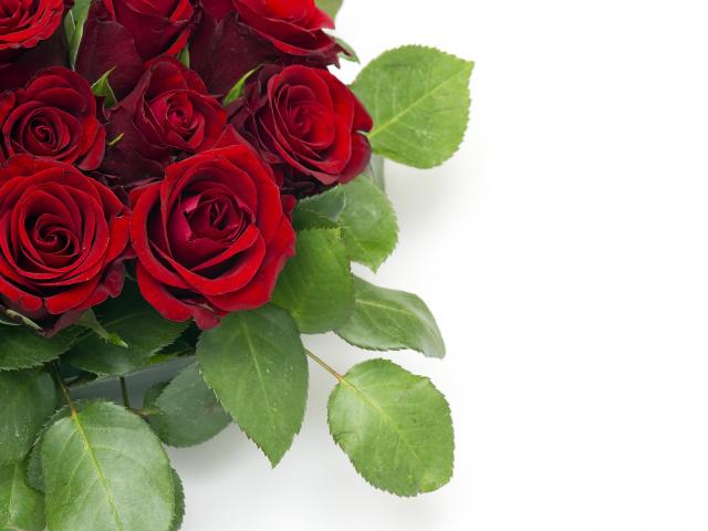 Wallpaper Bouquet of beautiful festive red roses on a white background