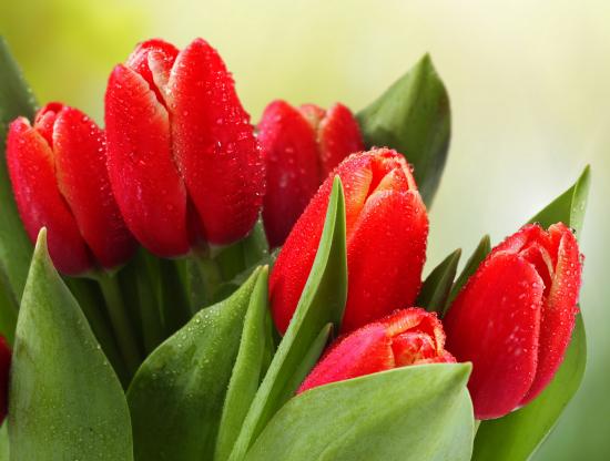 Wallpaper Bouquet of red tulips in dew drops