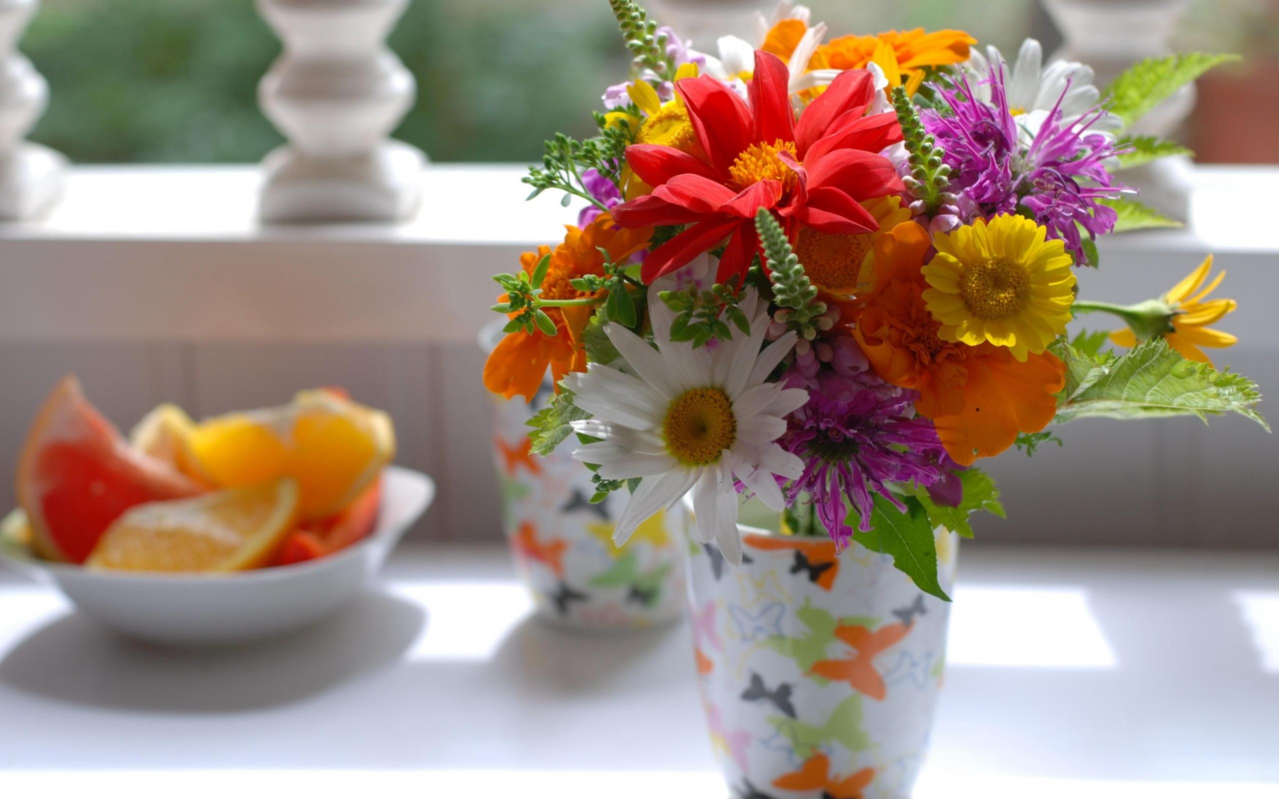 Wallpaper Bouquet of colorful garden flowers in a vase on the table