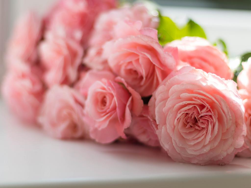 Wallpaper A bouquet of pink roses is lying on the white windowsill