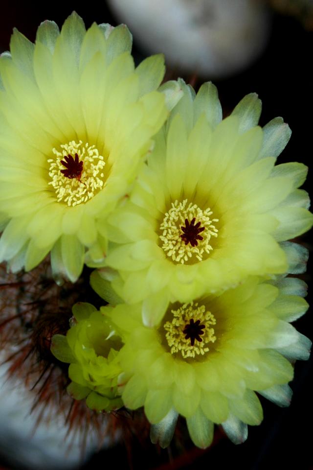 Wallpaper Delicate yellow flowers on a green prickly cactus