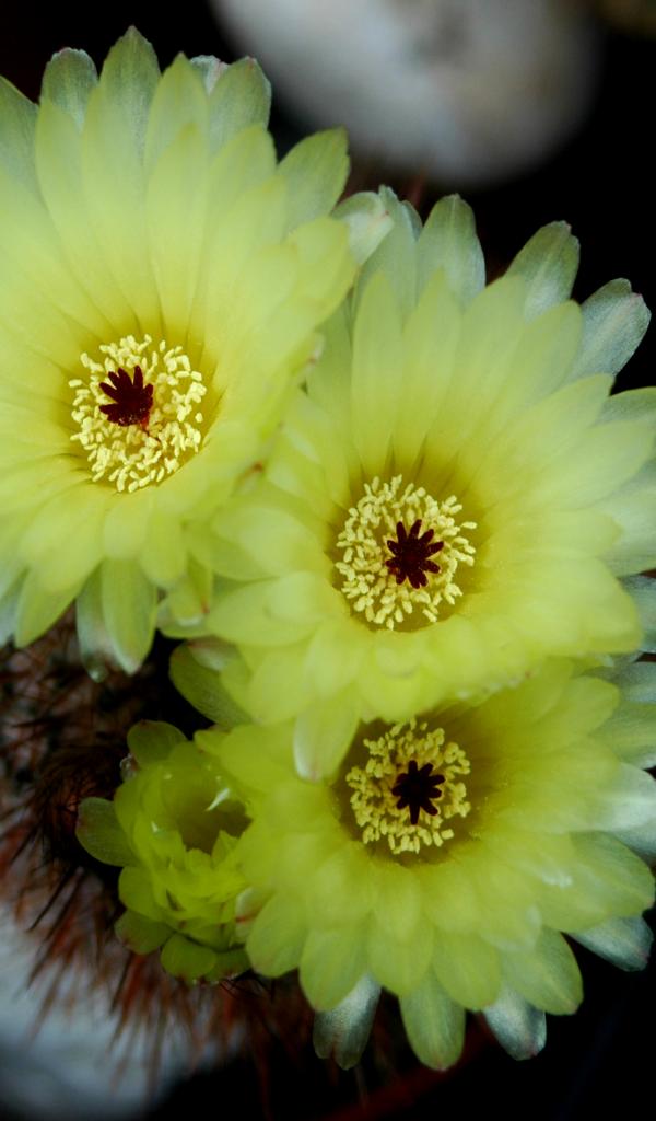 Wallpaper Delicate yellow flowers on a green prickly cactus