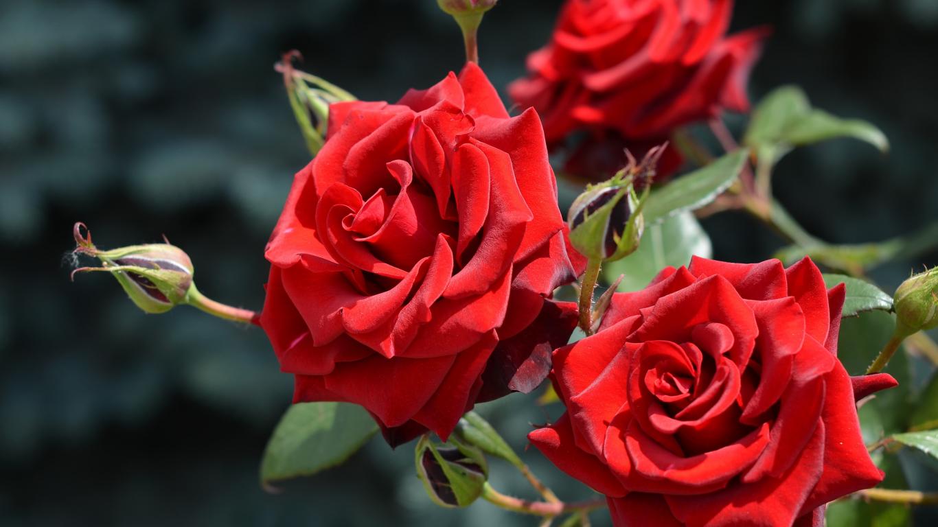Wallpaper Beautiful red roses with buds in the sun