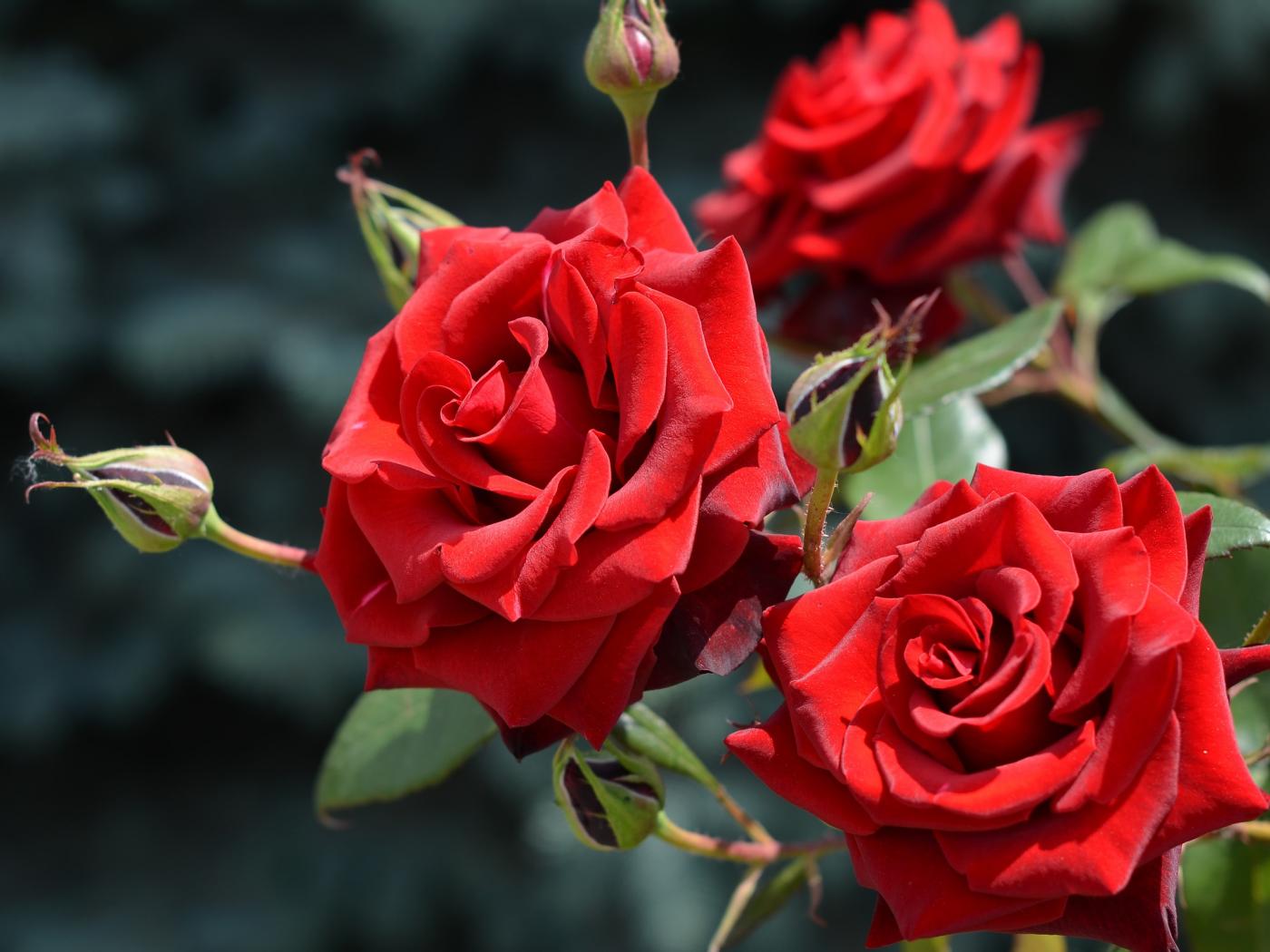 Wallpaper Beautiful red roses with buds in the sun