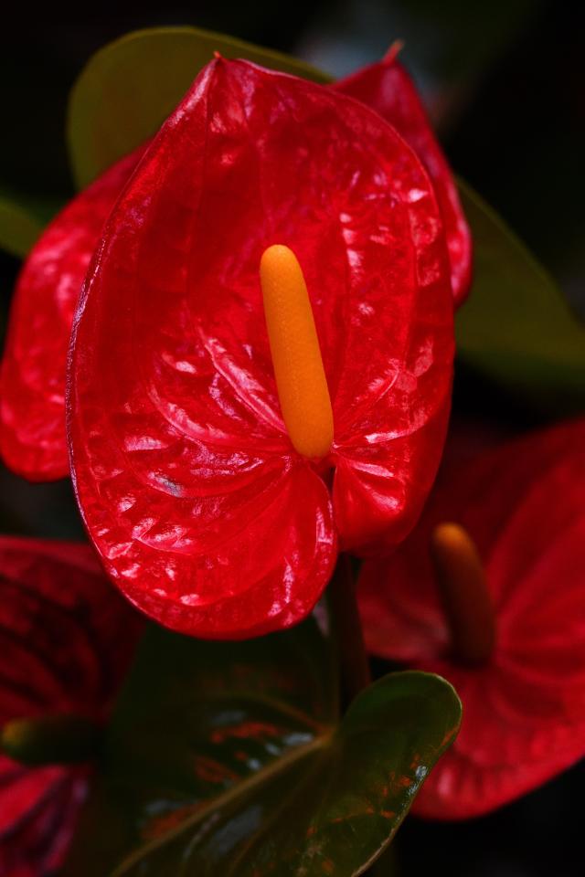 Wallpaper Red indoor anthurium flowers close up