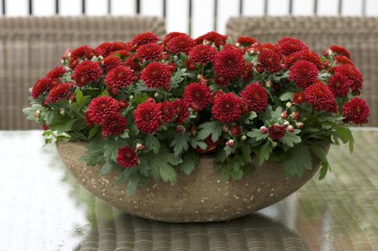 Wallpaper Red beautiful flowers of chrysanthemum on flowerbed