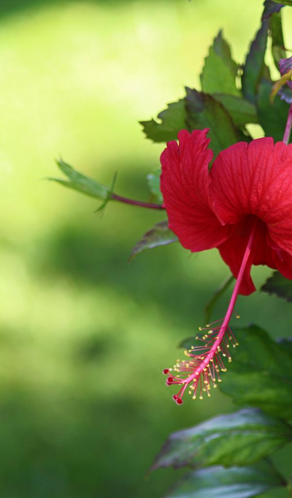 Wallpaper Red hibiscus flower with green leaves