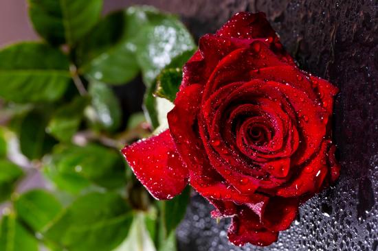 Wallpaper Covered with hoarfrost, a red rose is reflected in the surface