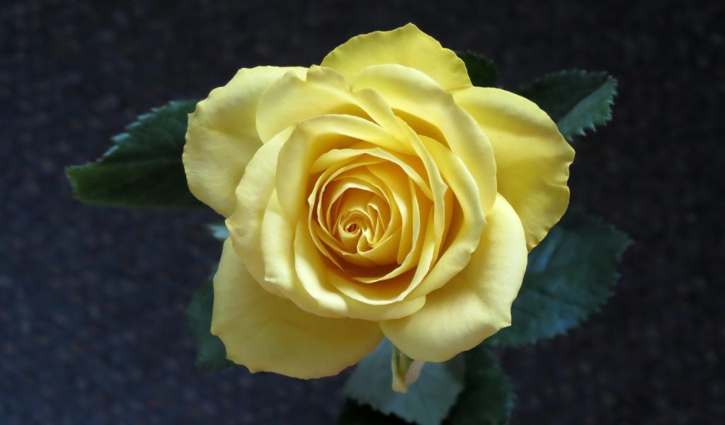 Wallpaper Delicate yellow rose close-up top view