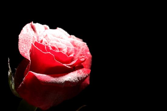 Wallpaper Frost-covered red rose on a black background