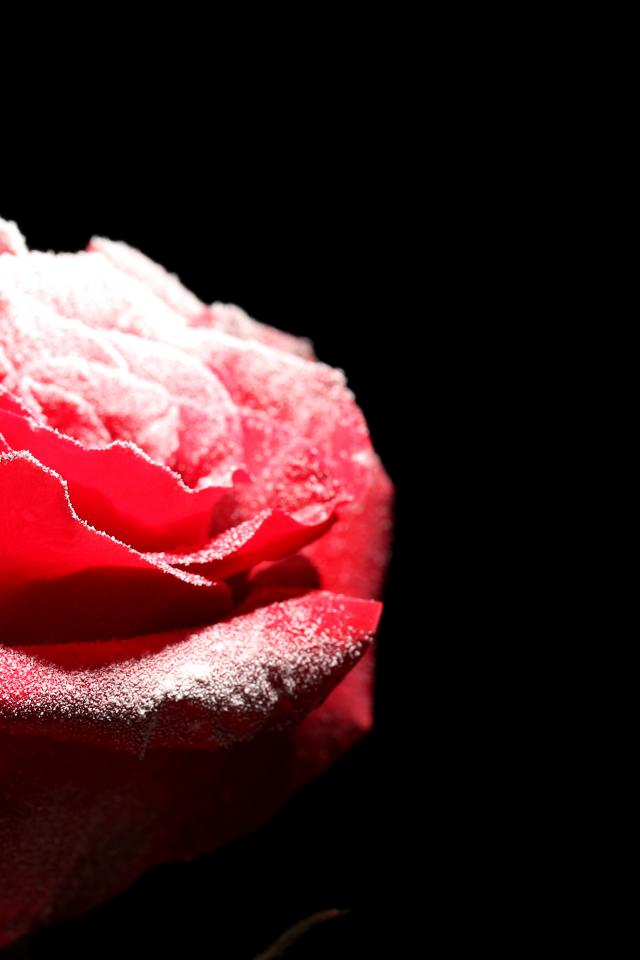 Wallpaper Frost-covered red rose on a black background