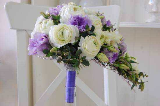 Wallpaper White buttercups and violet eustoma flowers in a bouquet