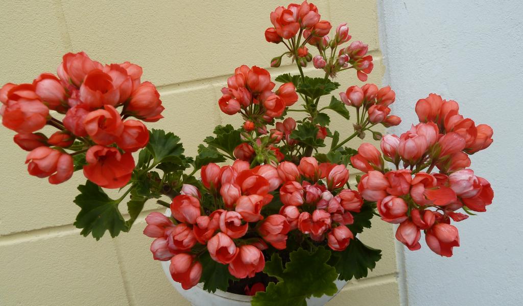 Wallpaper Pink potted geranium flowers in a pot