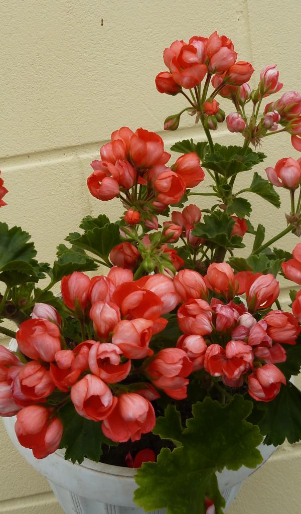 Wallpaper Pink potted geranium flowers in a pot