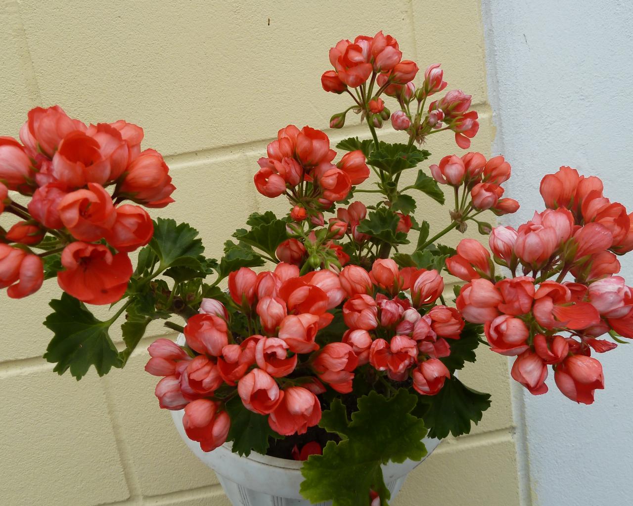 Wallpaper Pink potted geranium flowers in a pot