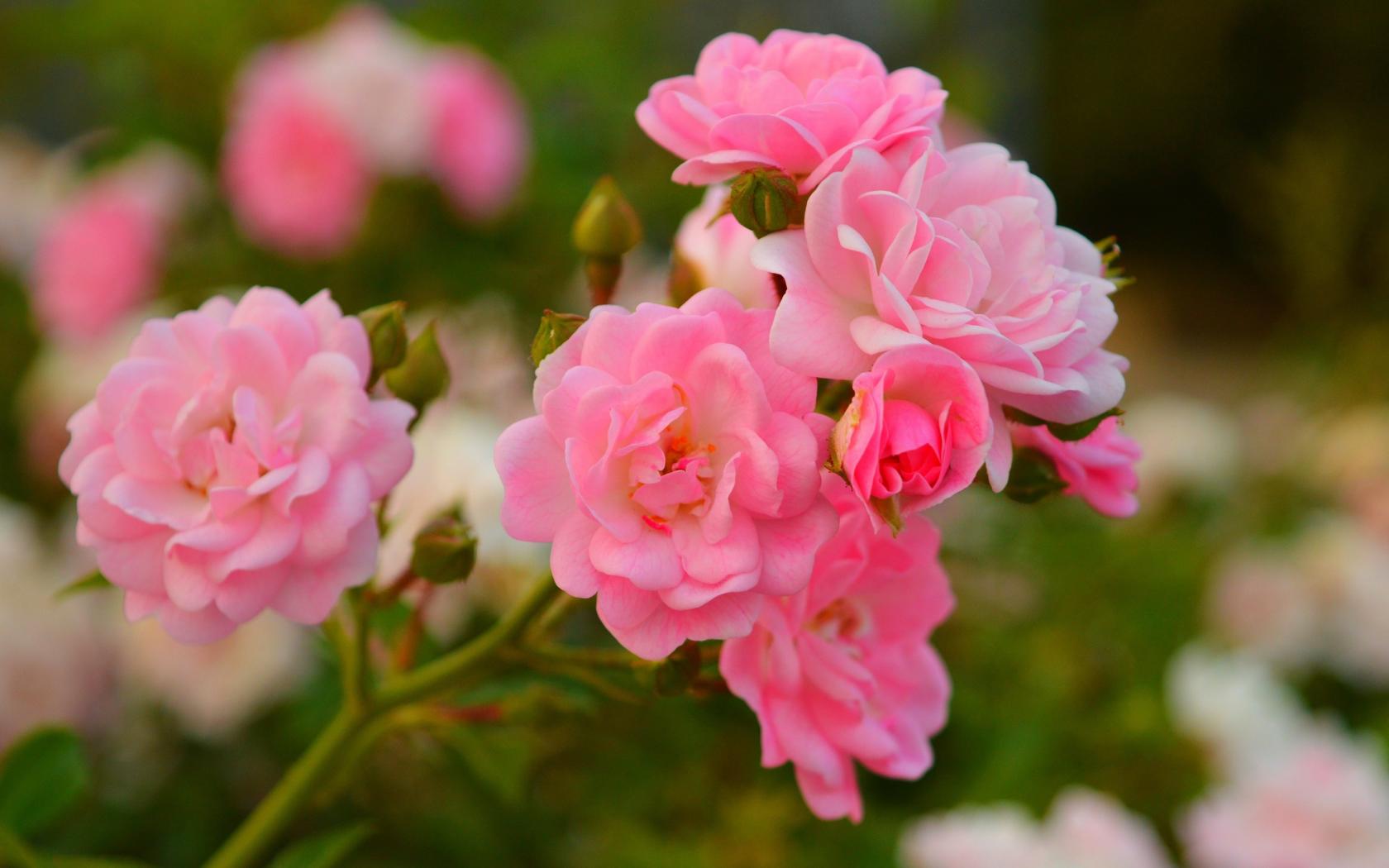 Wallpaper Pink small roses with buds on the flowerbed