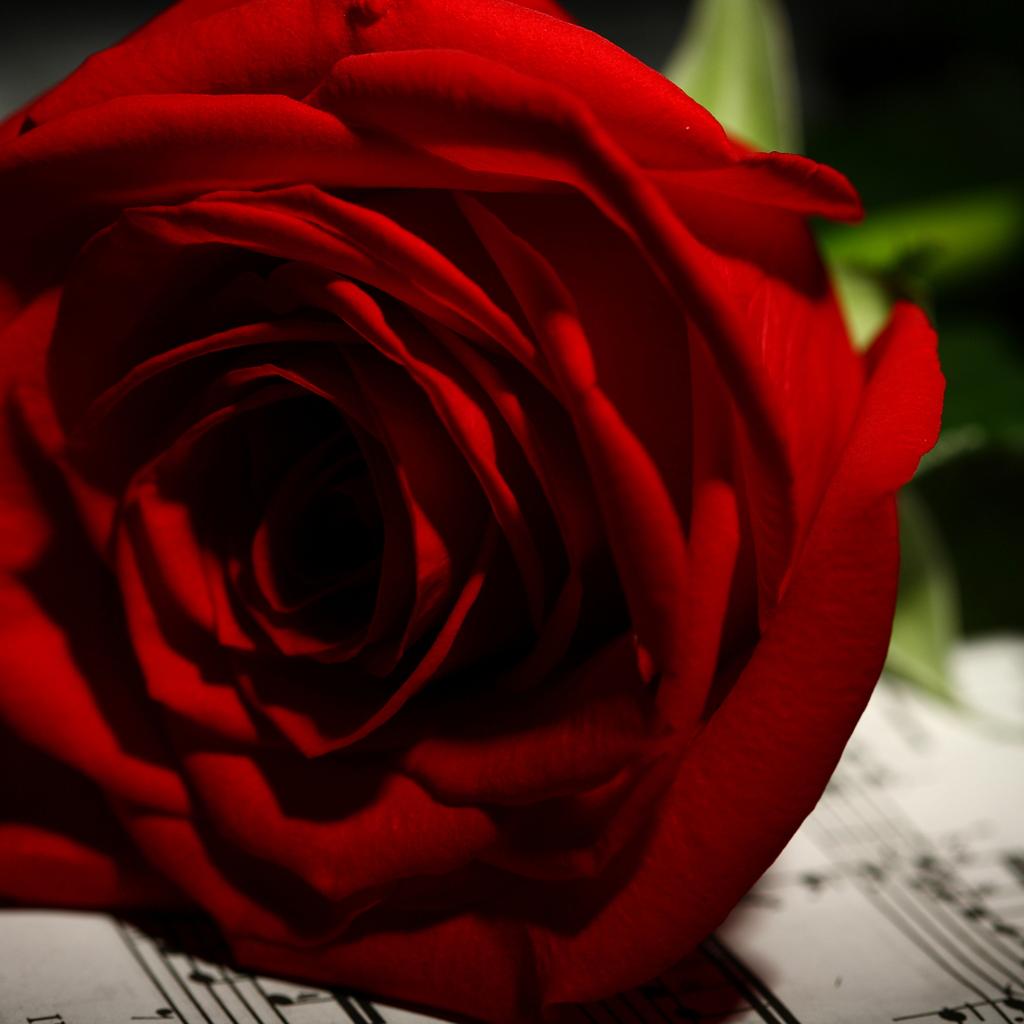 Wallpaper Leaves, Red rose, rose Petals, violin, notes