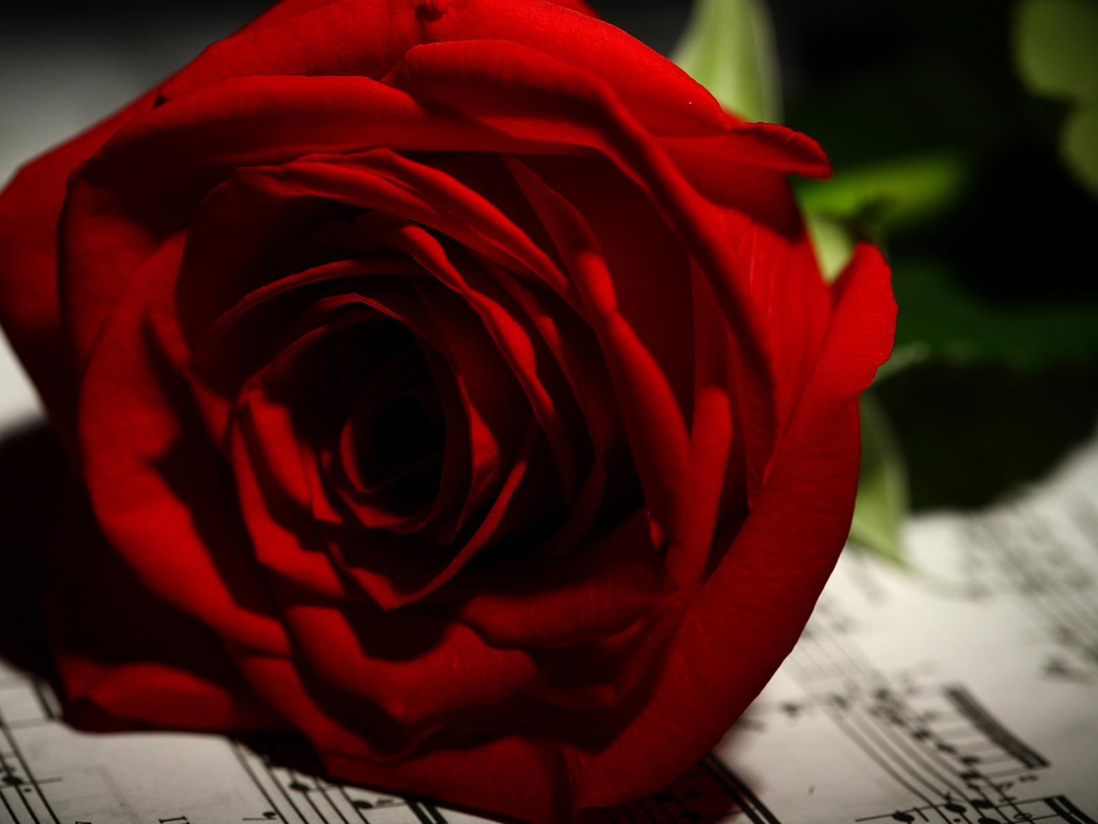 Wallpaper Leaves, Red rose, rose Petals, violin, notes