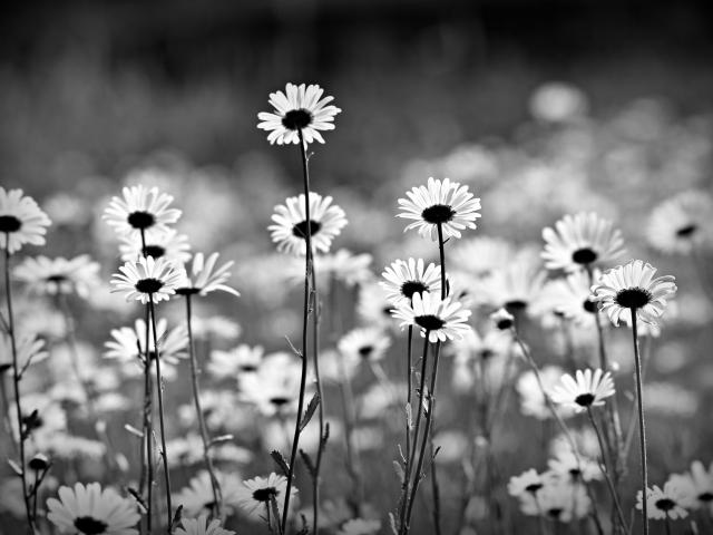 Wallpaper Delicate white daisies black and white photo