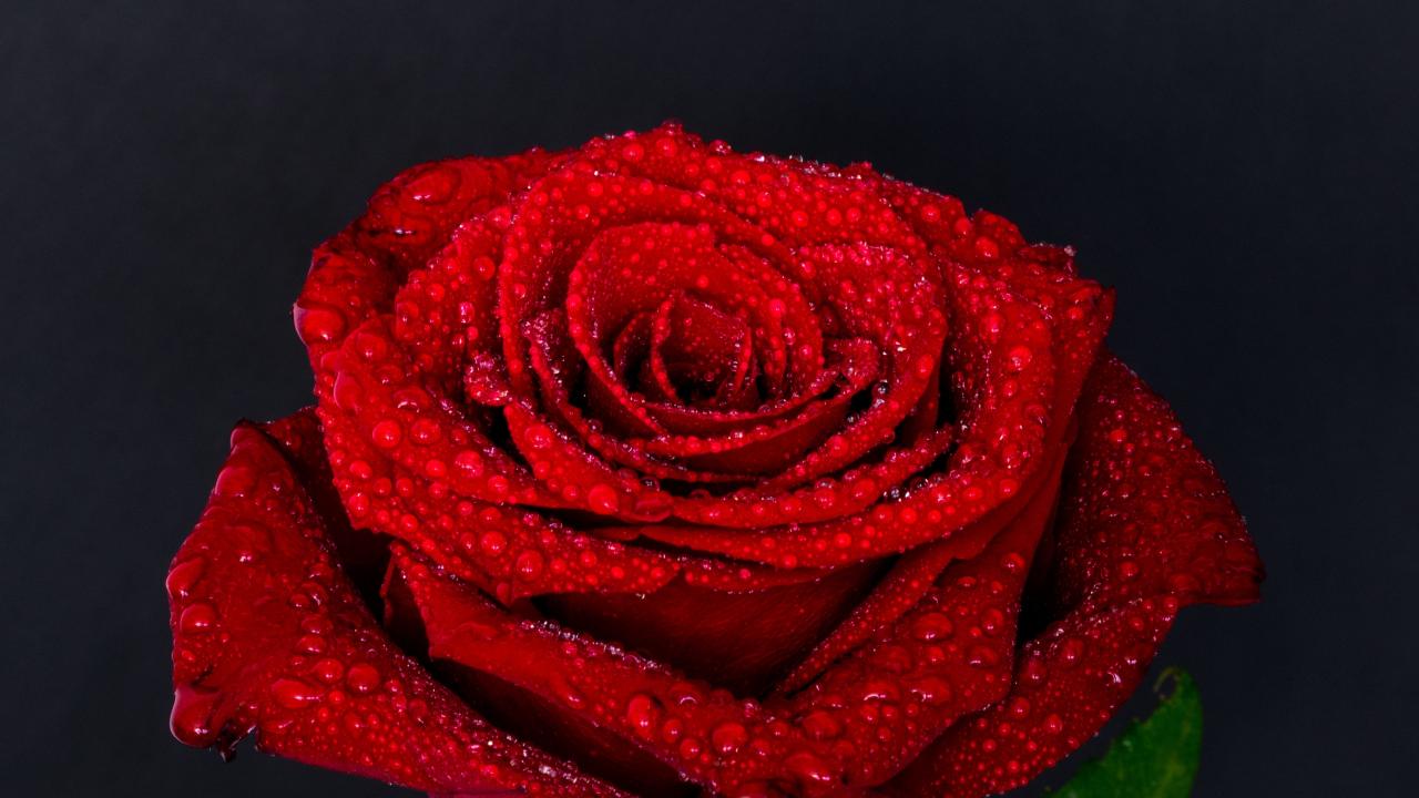 Wallpaper Red rose flower in water drops on gray background