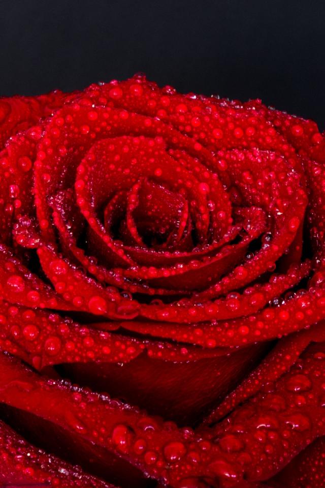 Wallpaper Red rose flower in water drops on gray background