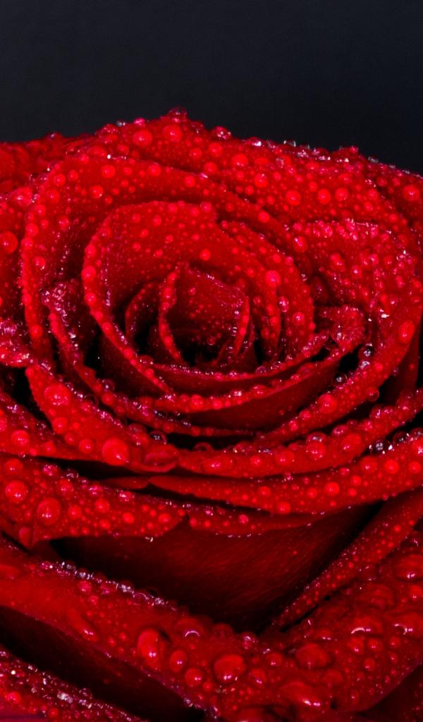 Wallpaper Red rose flower in water drops on gray background