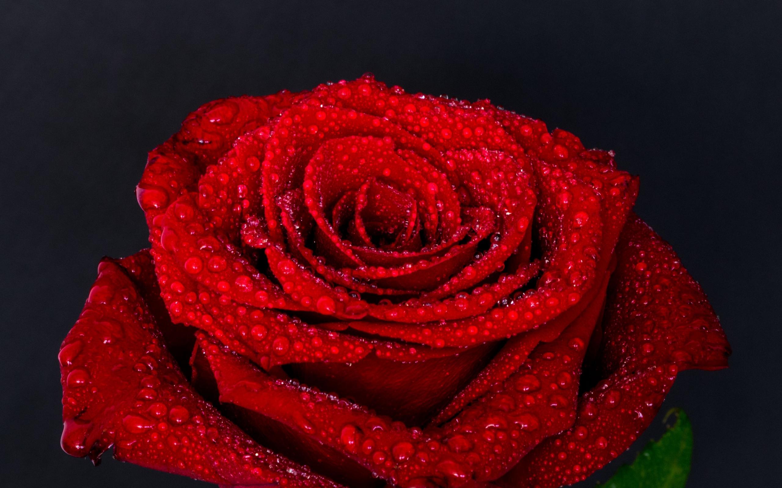 Wallpaper Red rose flower in water drops on gray background