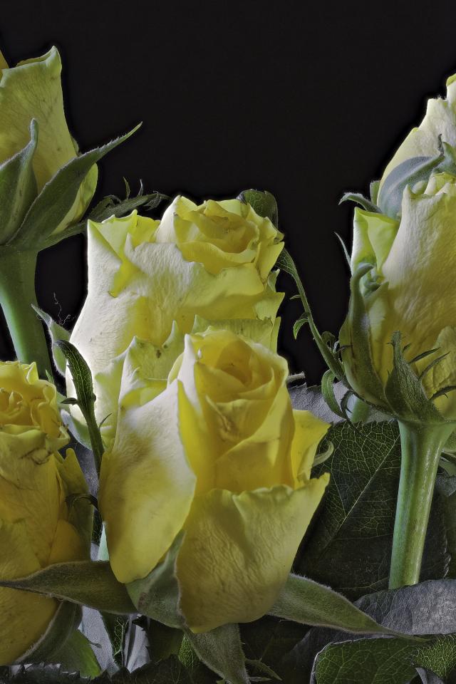 Wallpaper Buds of a yellow rose on a black background close-up