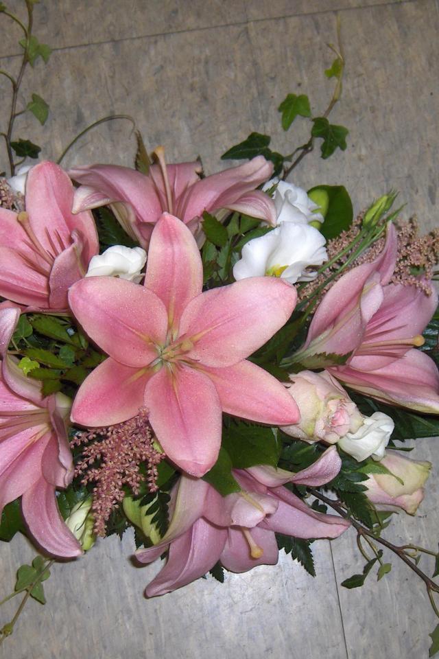 Wallpaper Bouquet of pink lilies with roses on the floor