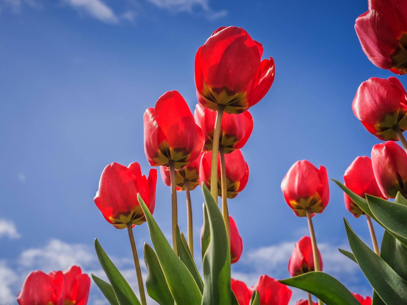 Wallpaper Beautiful red tulips against the blue sky